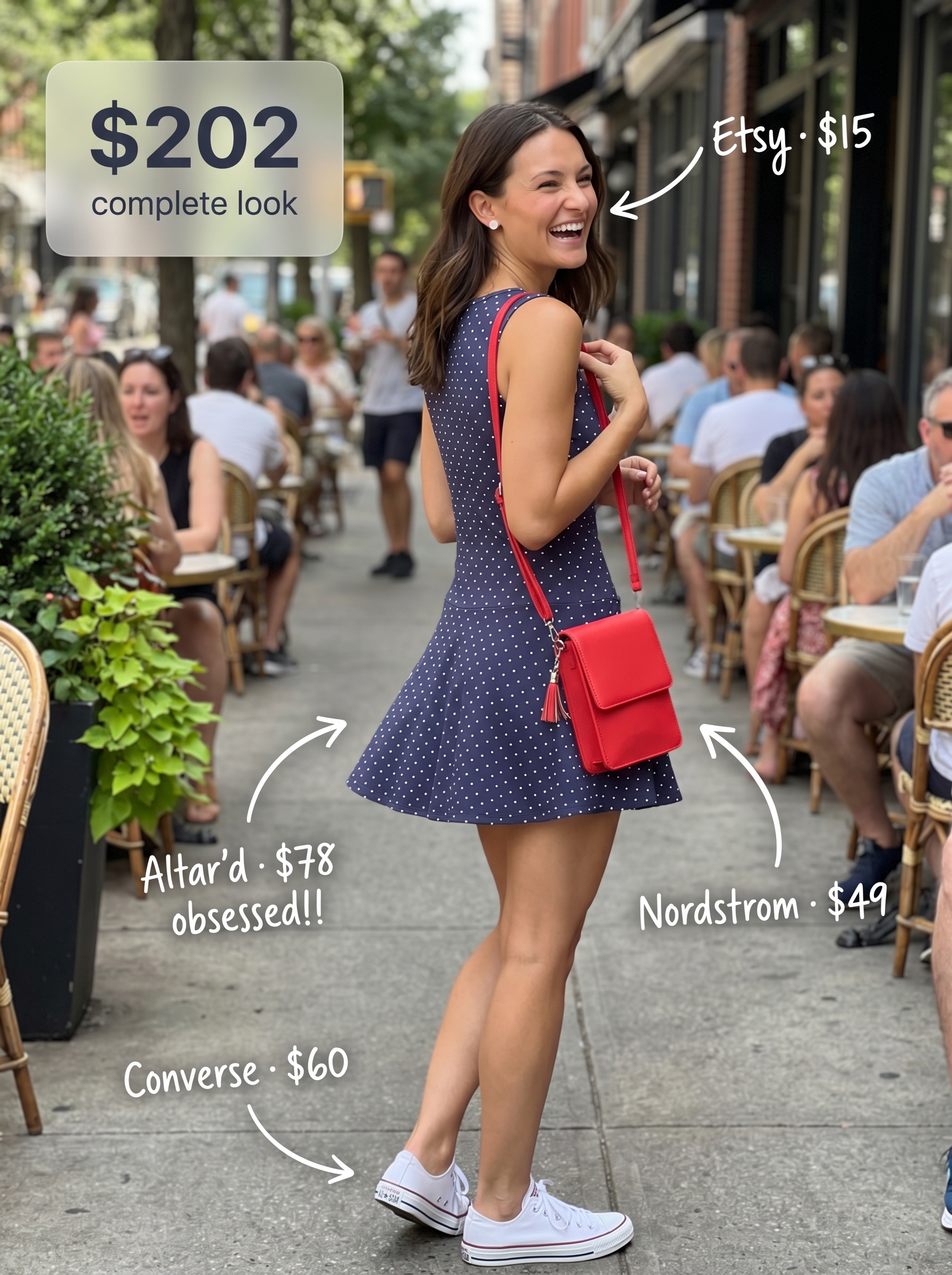 This pink gingham mini dress from Etsy, priced at $70.30, is practically begging for a checkered blanket and a sandwich—not to mention a charming wicker bag for $199. The cotton blend dress, with its delightful puff sleeves, can be worn on or off the shoulders, which is a surprisingly versatile detail for something so outwardly saccharine. Paired with white strappy flat sandals for $29.99, the whole look (totaling just shy of $300) held up brilliantly during a 3-hour picnic on rather lumpy grass. However, if your feet demand any semblance of arch support, these utterly flat sandals are a hard pass; they offer exactly none.