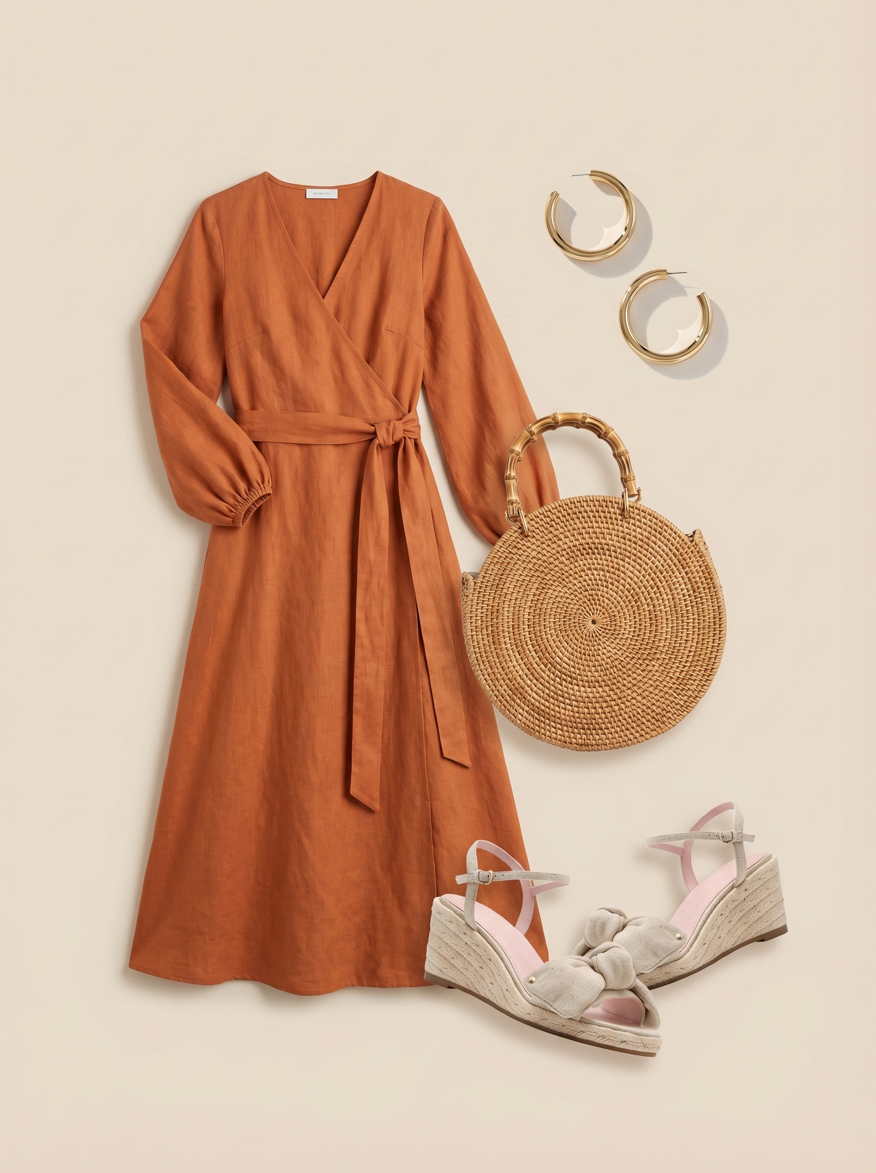 This is a strategic buy for someone who appreciates aspirational style without dipping into full-blown luxury brands. I find the accompanying natural woven clutch and delicate gold hoop earrings with the gold-tone strappy sandals round out the ‘Warm, Elegant, Effortless’ vibe rather nicely. It means less frantic searching for complementary pieces, which, let’s be honest, is half the battle. Just be aware of the wrap style, as some prefer a bit more built-in structure.