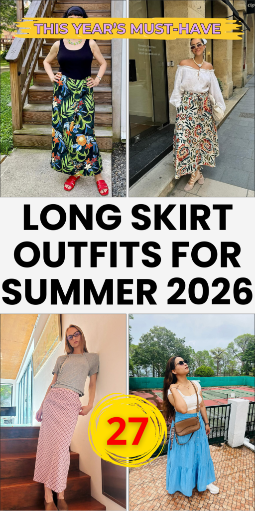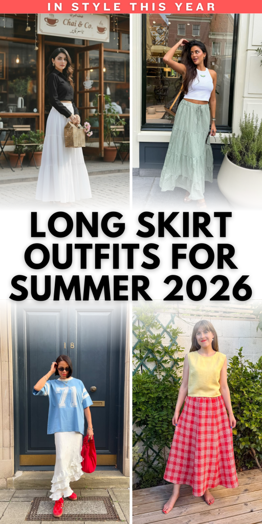 What makes long skirt outfits for summer 2026 so appealing is their versatility. A single silhouette can feel coastal and breezy, city-sharp, or softly romantic depending on how it’s styled. Pair one with sneakers, and suddenly the look leans streetwear; add delicate sandals and a Cardigan, and it transforms into a relaxed brunch ensemble.