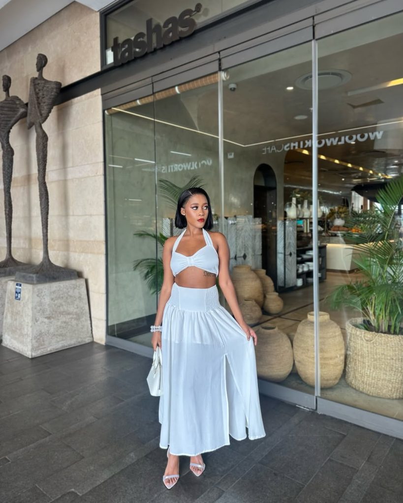This look leans toward a dreamy, almost resort-ready mood. It would feel perfectly at home during a sunset dinner, summer birthday gathering, or outdoor celebration.