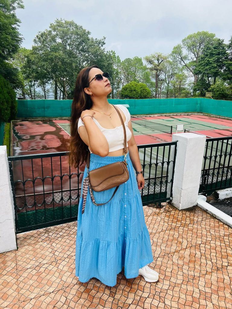 To elevate this look further, add gold statement earrings or a slim waist belt. With the right heels and clutch, the ensemble can easily transition into a classy, elegant outfit for a party night. What should be avoided? Loud prints or layered jackets—the bold skirt already does the talking.
