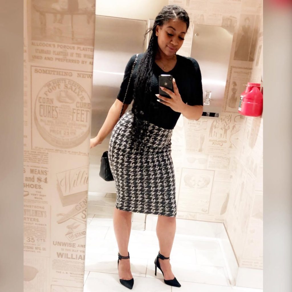 To keep the outfit cohesive, avoid over-accessorizing—the houndstooth already carries visual interest. A bold red lip could elevate this for Dinner or a low-key Night out, while a softer nude keeps it strictly Work-ready. For my Plus size readers, this silhouette is especially flattering—high-waisted skirts define the waist while maintaining structure.
