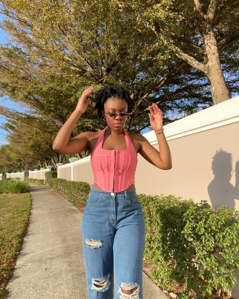 4. Pink Corset Top & Casual Jeans: Playful Spring Edge