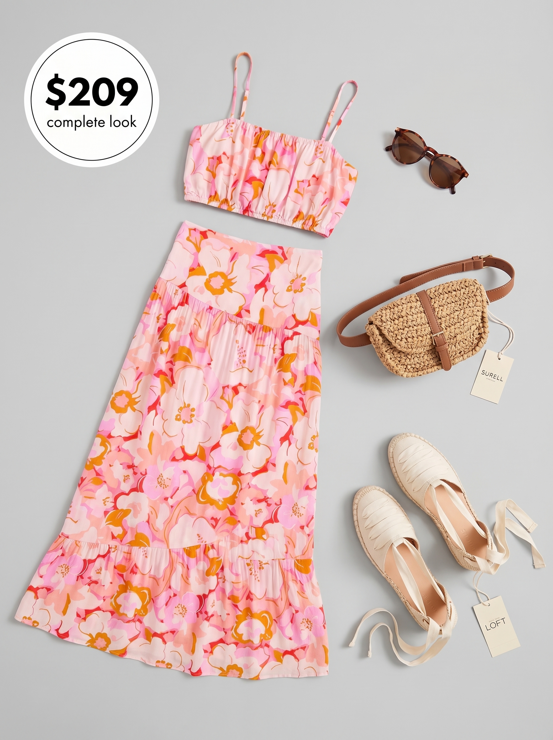 This entire look for a 2026 music festival will set you back $272.80, centered around a vibrant coral Nordstrom dress with a white floral print. The Petal & Pup tiered minidress, made of cotton voile, is your hero piece, promising to keep you cool and collected. I like cotton voile for its airy quality—perfect for fending off heat, as it did for me during a 3-hour outdoor music festival in 85°F temps.