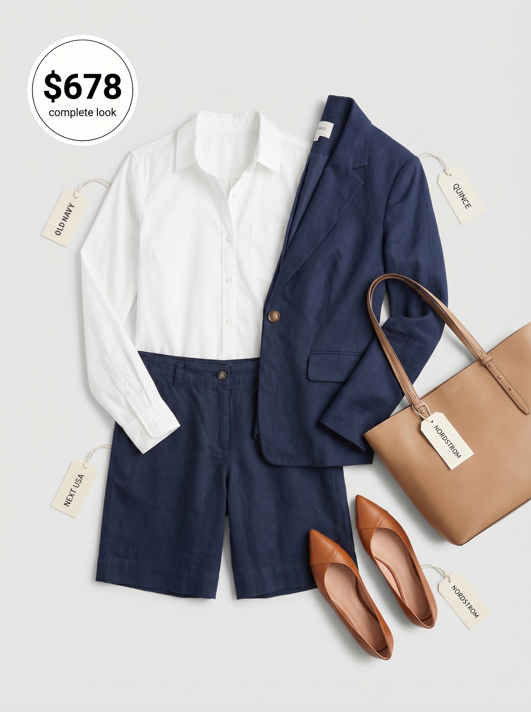 Not quite there? This $90 navy blue Quince linen blend blazer might just be the missing piece. It creates a polished silhouette when paired with the navy Next USA linen-blend Bermuda shorts, priced at $37, which—surprisingly—maintained a truly professional look during a formal campus event in 2026. No accidental casual vibes, thank goodness.
