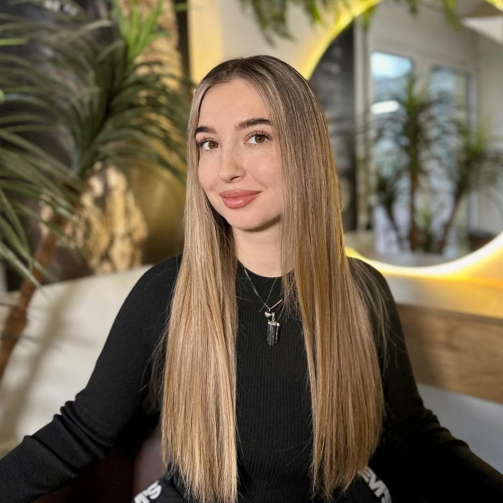 There’s something so fresh and approachable about this Long, softly glowing Blonde look. It has that healthy, natural shine that makes hair feel alive, not styled to perfection. The simplicity of the straight finish lets the color and condition take center stage, creating an overall look that feels warm, effortless, and quietly beautiful.