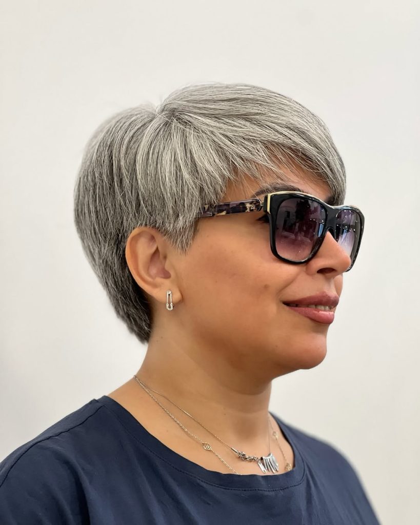 This Short pixie with an undercut brings a bold, modern twist to classic cropped styles. The contrast between the closely cut sides and the fuller, textured top creates a striking silhouette that feels confident and a little daring. It’s the kind of haircut that turns heads without needing anything extra.
