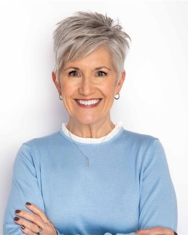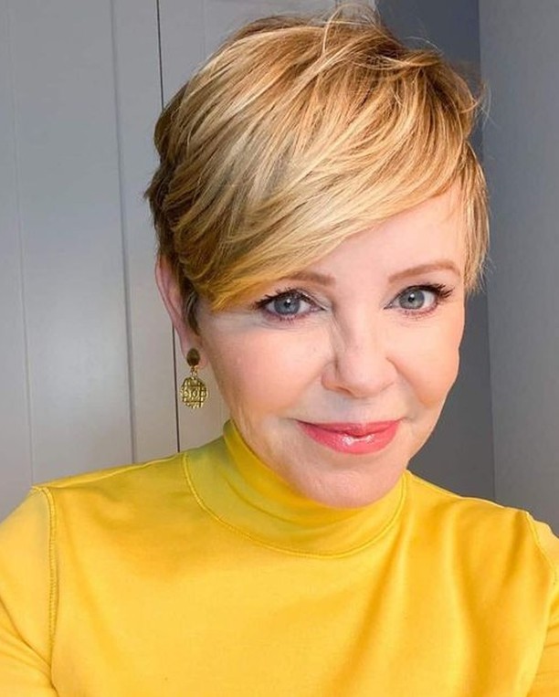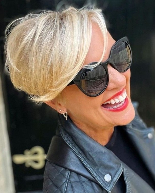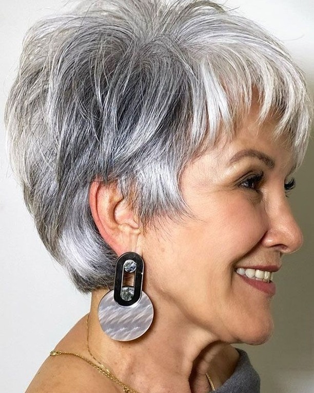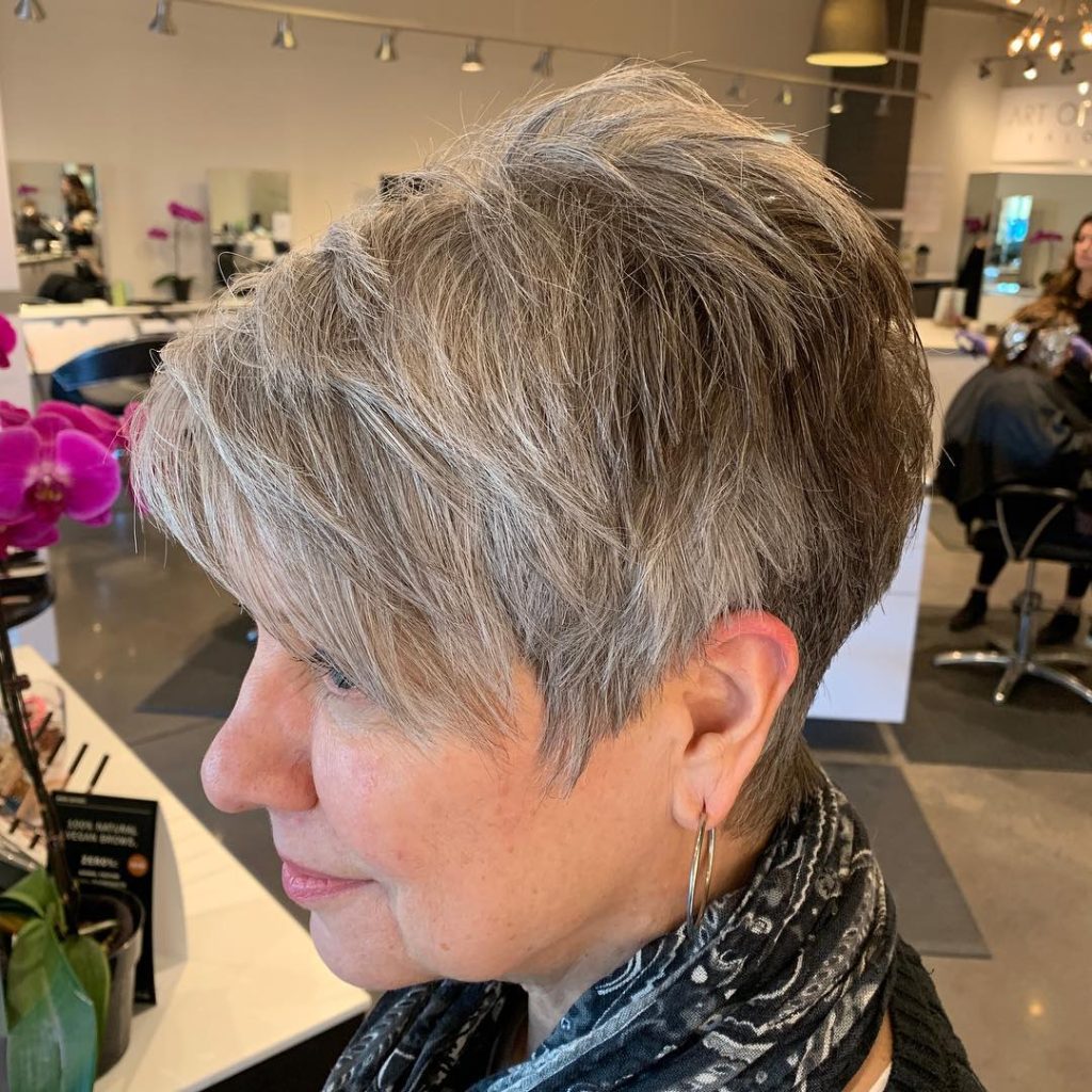 This hairstyle is perfect for fine-haired women who desire volume without having to go for the long look. The feathered fringe also allows it to suit various face types, particularly round faces. This pixie haircut only requires a little blow-drying or brushing to look fashionable and well-coordinated, making it an apt hairstyle for 60 chic women who favor low-maintenance yet fashionable hairstyles.