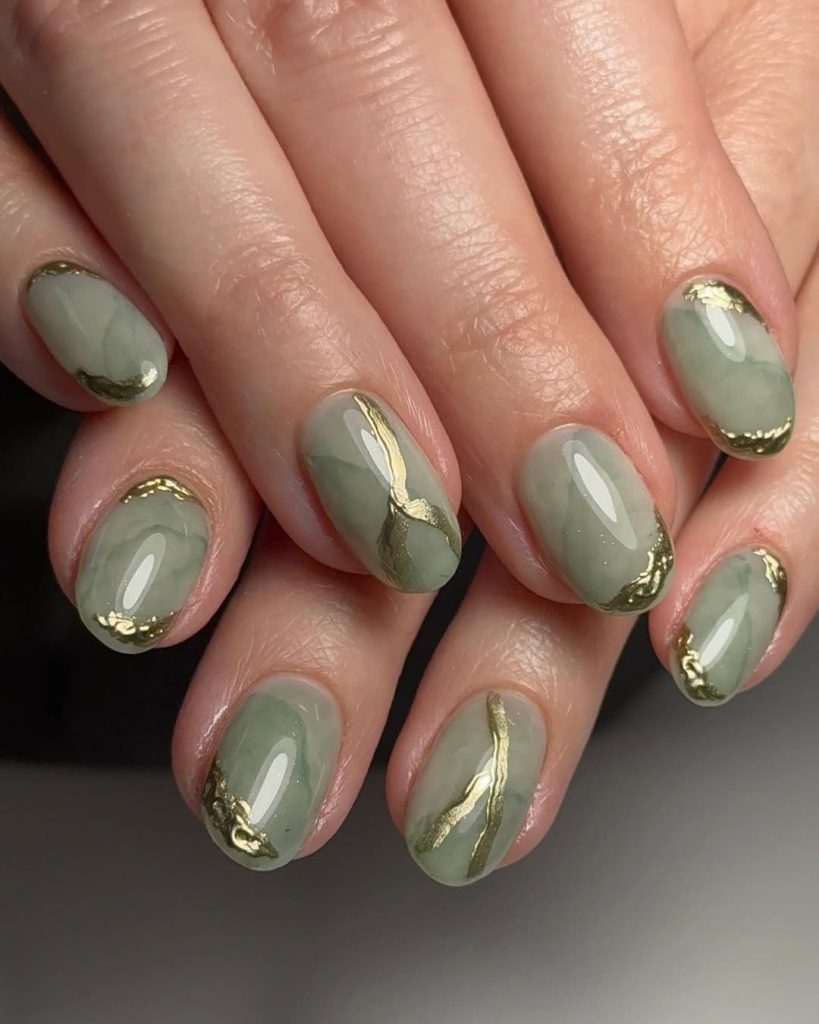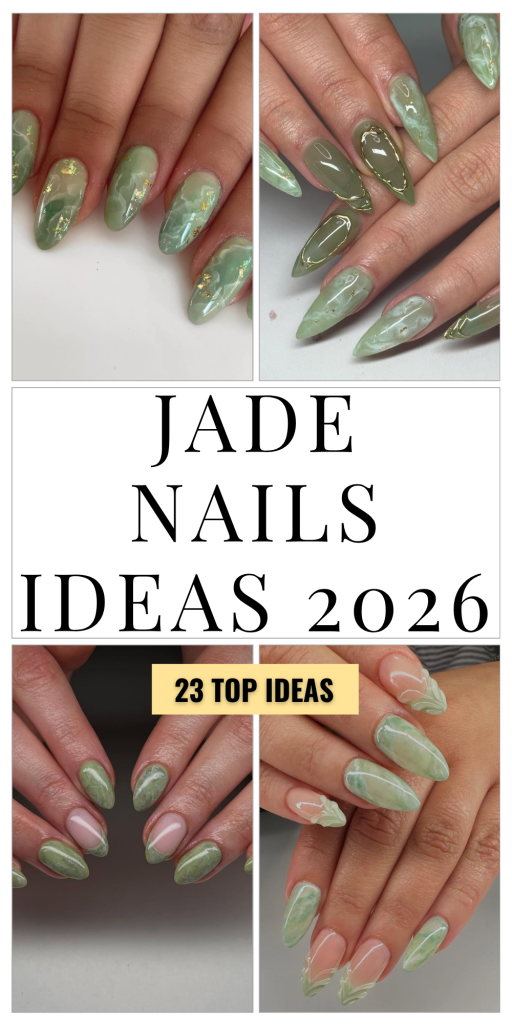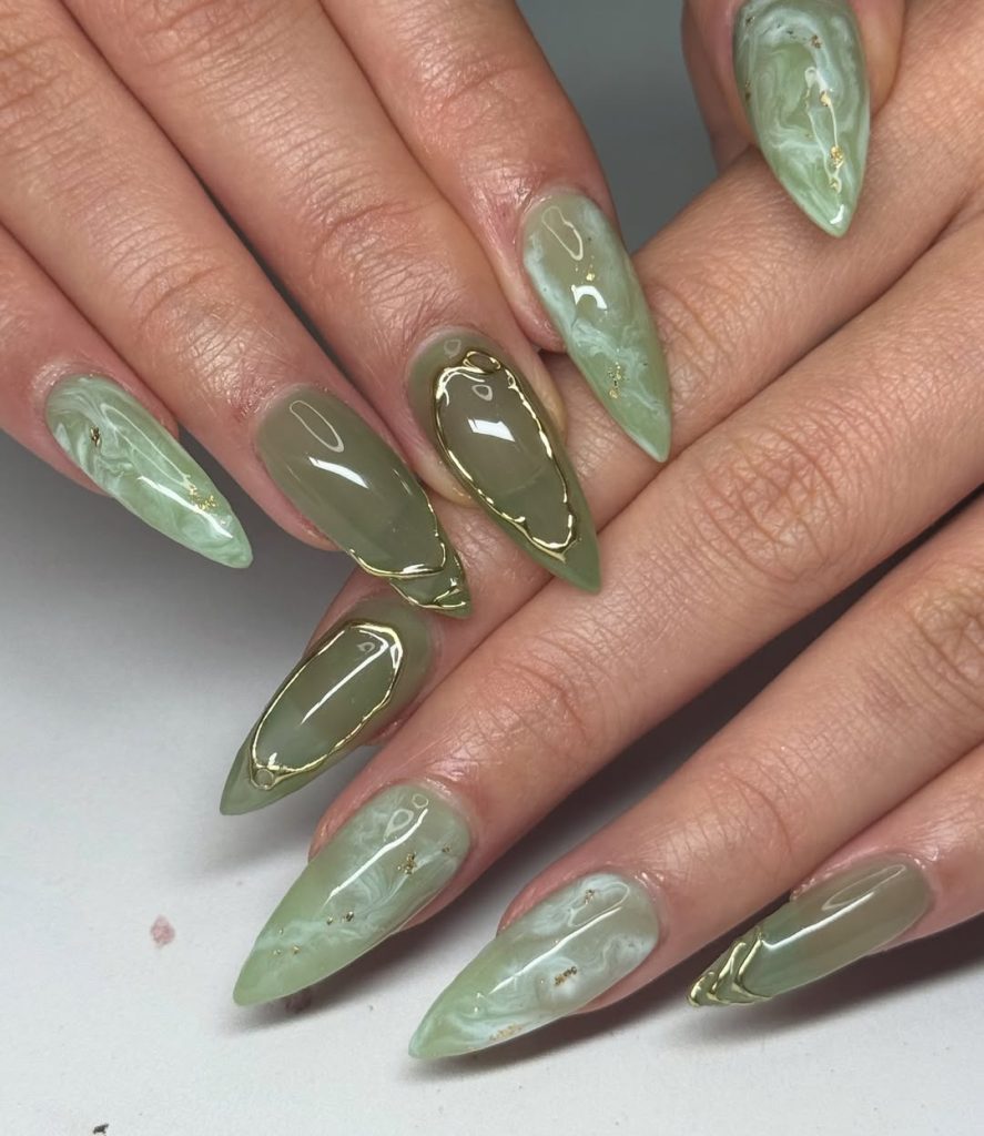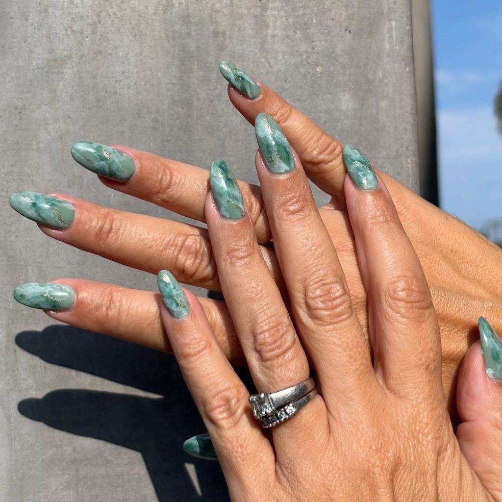 23 Jade Nails Ideas 2026 – Green Marble and Gold Nail Designs