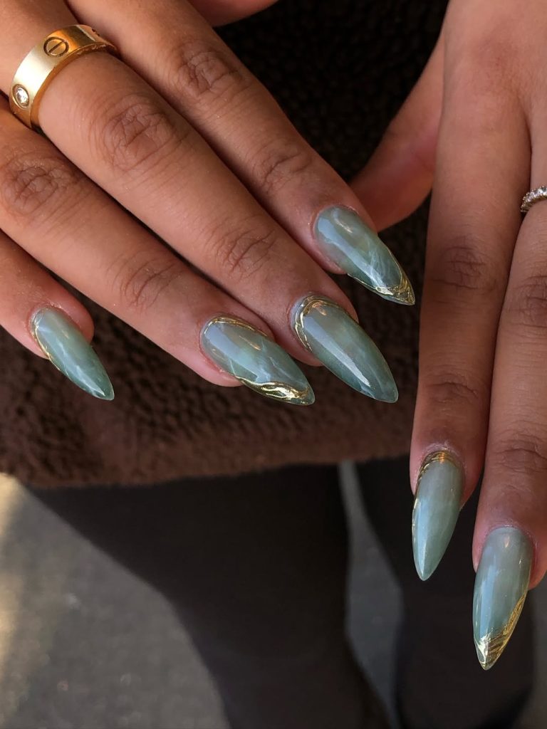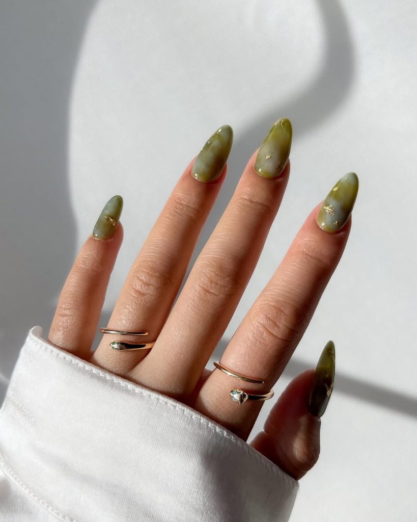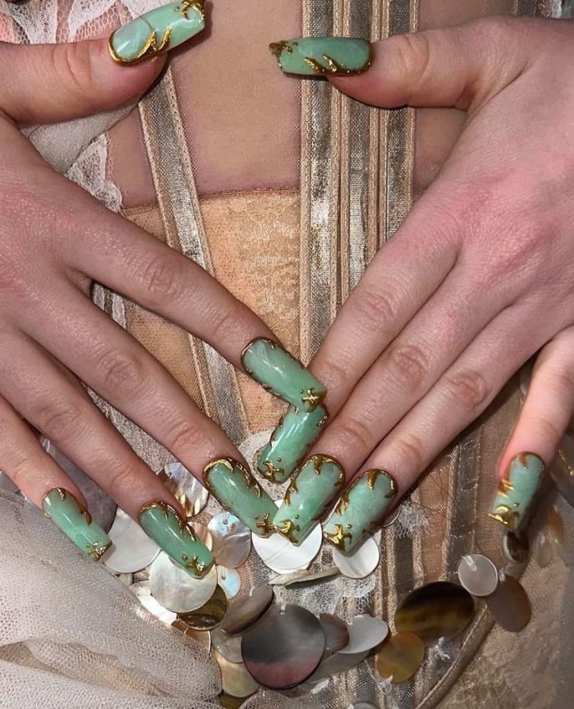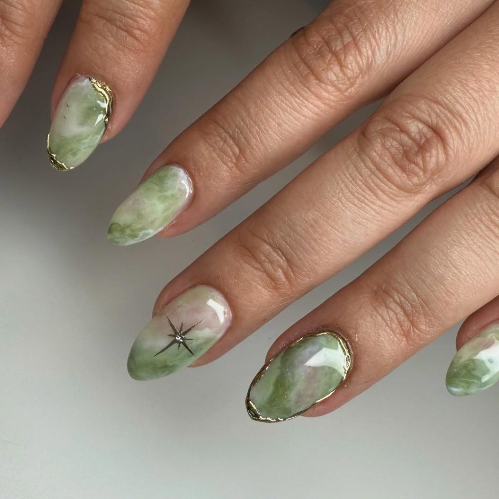23 Jade Nails Ideas 2026 – Green Marble and Gold Nail Designs