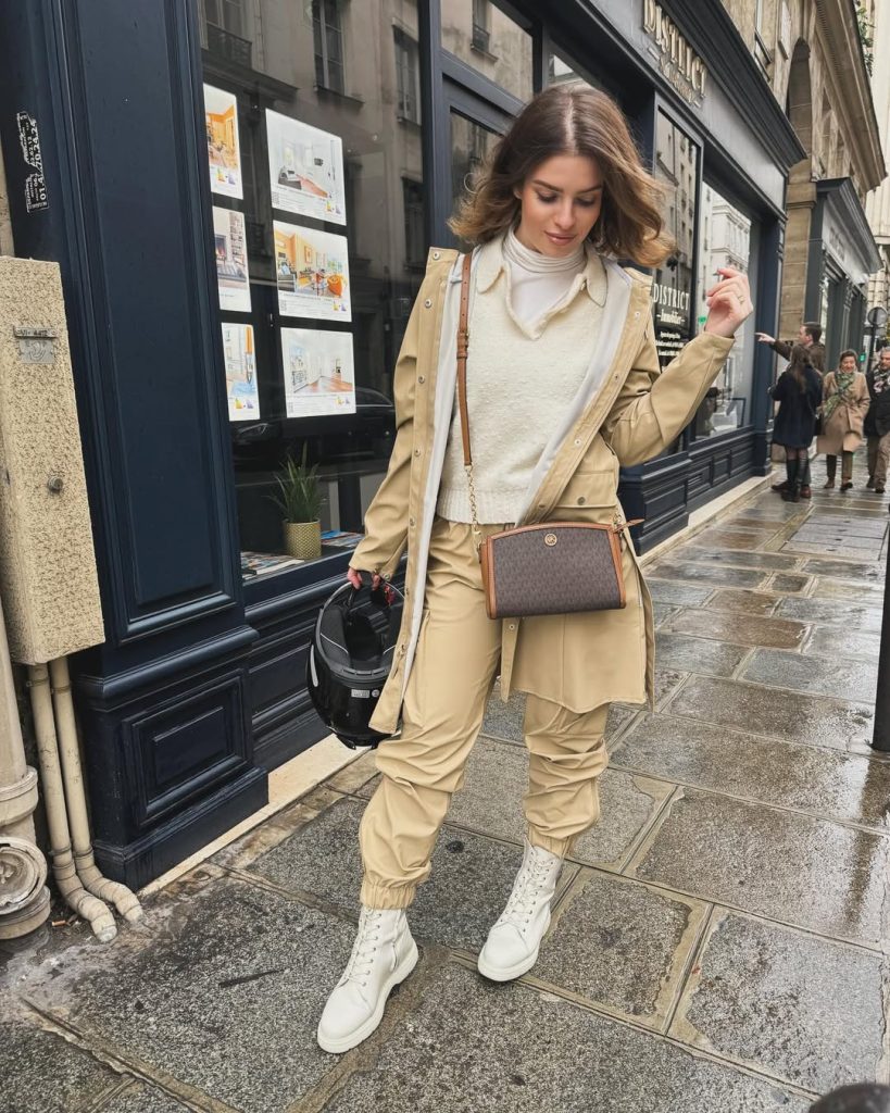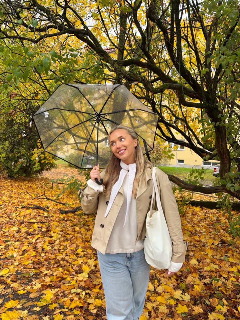 This outfit is all about cozy inspo—hugs of soft knit, neutral tones from your high-quality beige trench, and subtle smooth touches that exude easy, stylish sass. This one is perfect if you’re one of those people caught up in those seasons where it rains all day long, but not so heavily that you need to worry about splashing puddles at your toes.