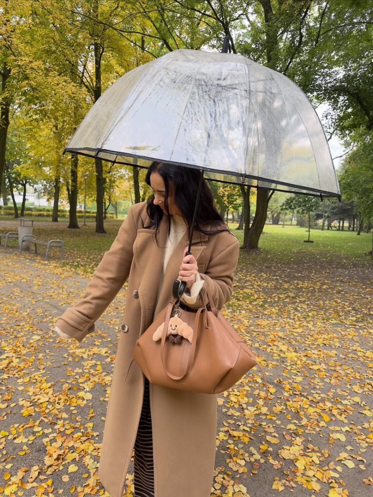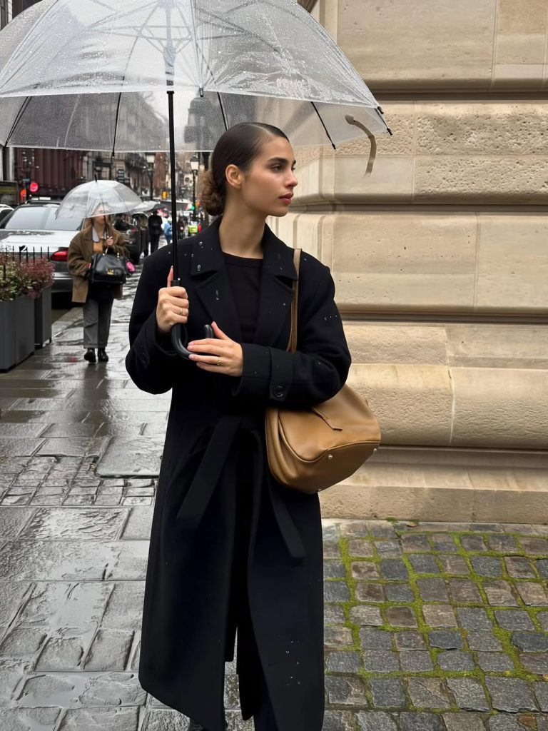 The influence that this ensemble exudes is what makes this outfit come alive. It is confident, minimalist, and elegant—a perfect inspo for women who find beauty in subtle fashion pieces with an edge, including ones compatible with 2026 trends. Coupled with an uncompromising umbrella, this is one outfit that will exude poise, including its impact, regardless of whether it is raining.