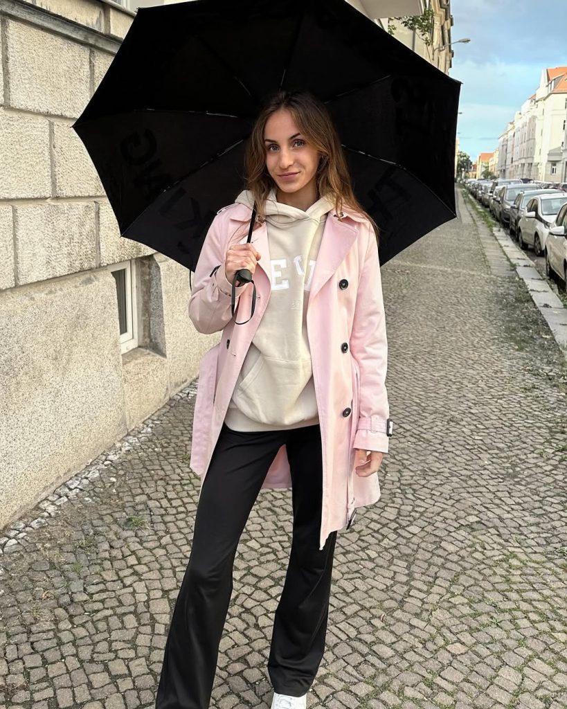 And if you love easy-going pieces, you will love this one. The belted waist gives it some definition without compromising comfort, and the hood also helps you stay protected in wet conditions and spring wind. It’s one of those perfect reminders that outfit ideas on rainy days shouldn’t be intricate—sometimes, it’s the simplest ones that manage to refresh us the most.