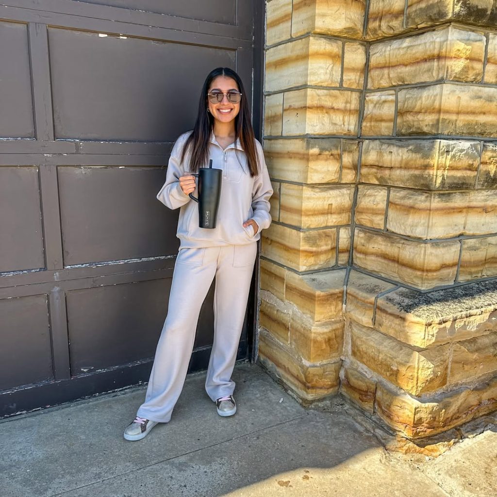 A soft, neutral athleisure look designed for slow mornings and calm afternoons, where comfort takes the lead without looking sloppy.