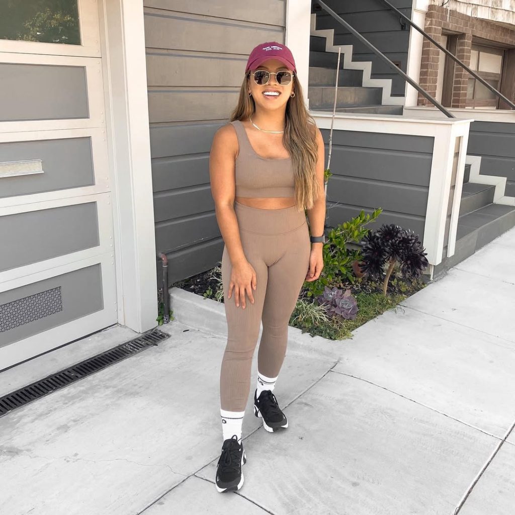 This outfit is perfect for indoor workouts, casual meetings, or stylish lounging at home. Add minimalist jewelry or a sleek ponytail to personalize the look, but skip contrasting colors to preserve the monochrome effect. This outfit reflects how athleisure continues to evolve beyond 2025 into confident, intentional dressing.