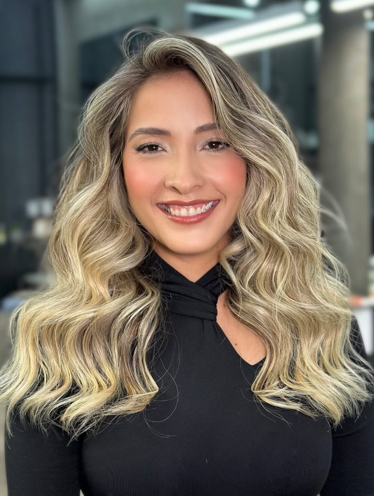 13. Voluminous Blonde Waves with Luminous Honey Highlights
