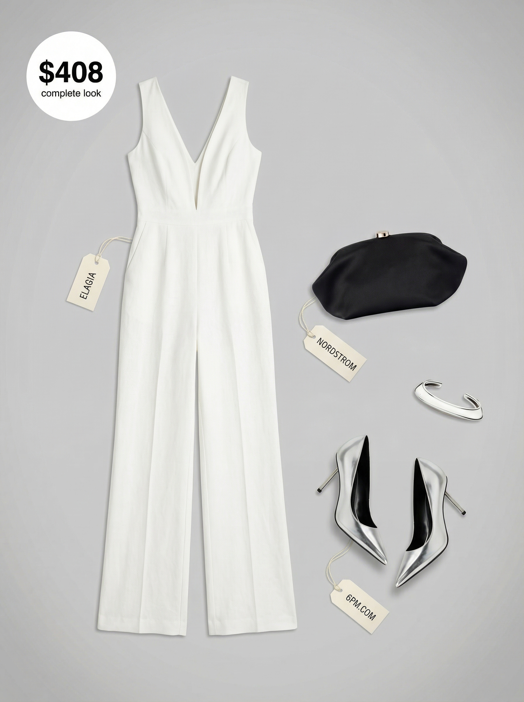Paired with $32.70 faux leather silver metallic pumps from 6pm.com, the outfit achieves a futuristic glamour that also elongates the legs. This makes it an ideal choice for a dinner date or a fashion event. This is why it works: the combination of timeless elegance and bold modern accents makes for an effortlessly chic vibe.