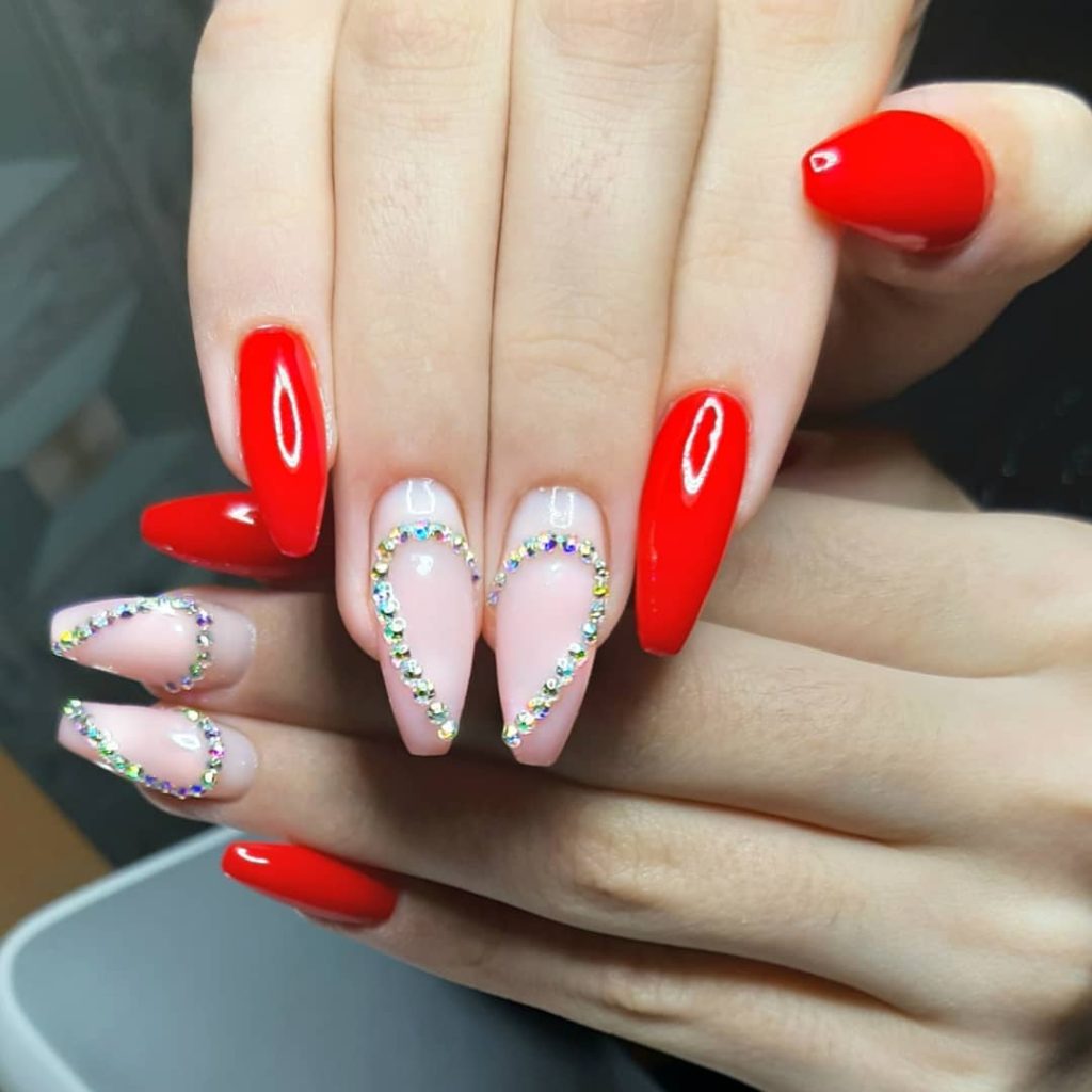 The emotional payoff is what makes this style so irresistible. The red brings power, while the crystals soften the look with cute elegance. It’s perfect if you’re craving inspo that feels feminine, expressive, and a touch dramatic without losing its simple structure.