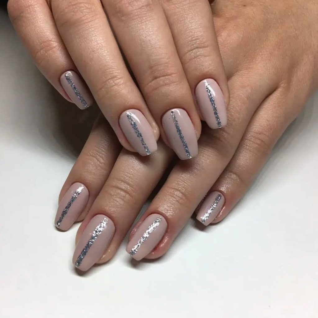 If you love design ideas that stay simple and classy, this is a perfect everyday option. The vertical silver line adds just enough art to keep things interesting, and the medium ballerina shape makes the nails look longer without feeling too bold. It’s a wonderful inspo choice for women who prefer elegant minimalism.
