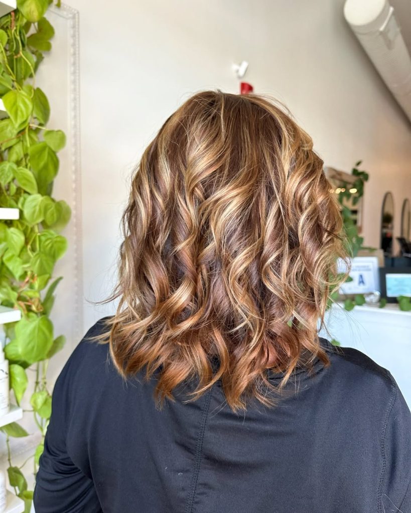 This haircut is perfect for women who want volume and dimension without going too long. The curls give natural lift, while caramel tones brighten the overall look. Using a curl cream will enhance definition, and this style works beautifully for both casual days and evenings out.