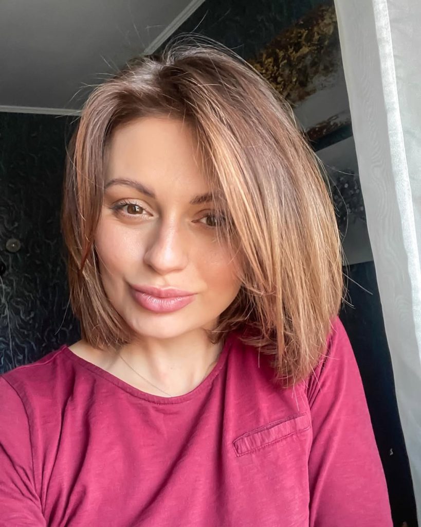 This bob is perfect for women with fine to medium hair who want a little extra volume. The caramel tones enhance shine and dimension, making the cut appear fuller. A blowout with a round brush keeps the ends smooth, while a light mist of hairspray ensures lasting hold.