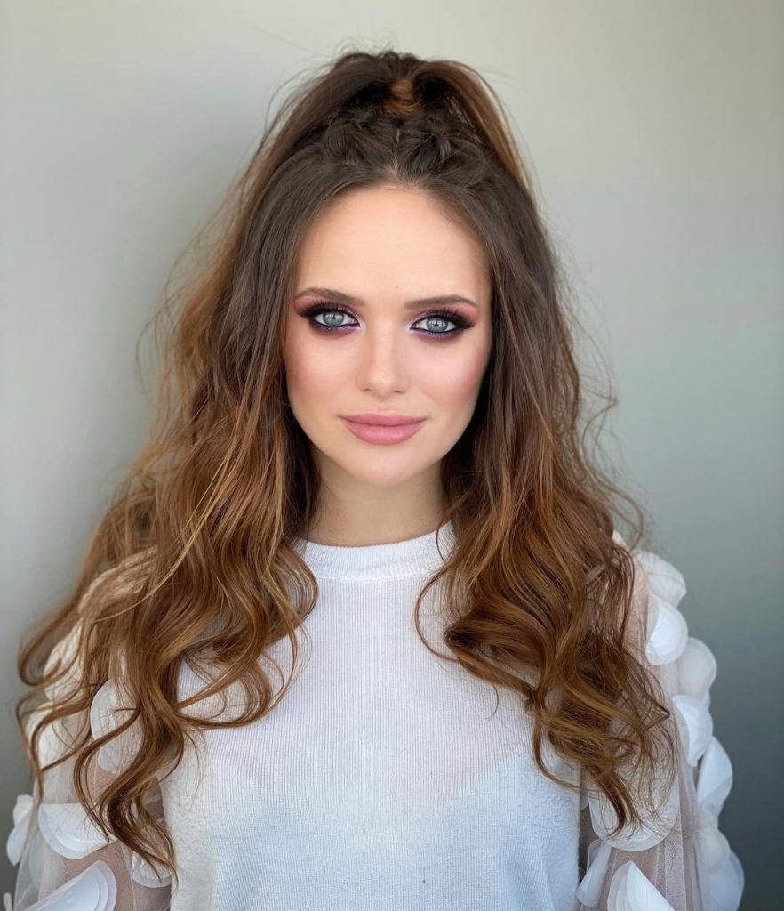 23. High Half-Up Style with Caramel-Tipped Waves