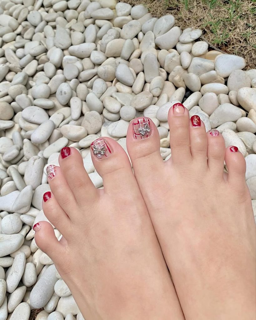 This look is perfect if you’re a fan of classy, simple designs that don’t require extra maintenance. Burgundy is universally flattering and works for all ages, making it a go-to polish shade for 2025 winter. Whether you’re slipping into strappy heels for a party or fuzzy slippers at home, these designs red toenails will keep you feeling polished and confident all season long. Sometimes, the most beautiful ideas are also the most effortless.