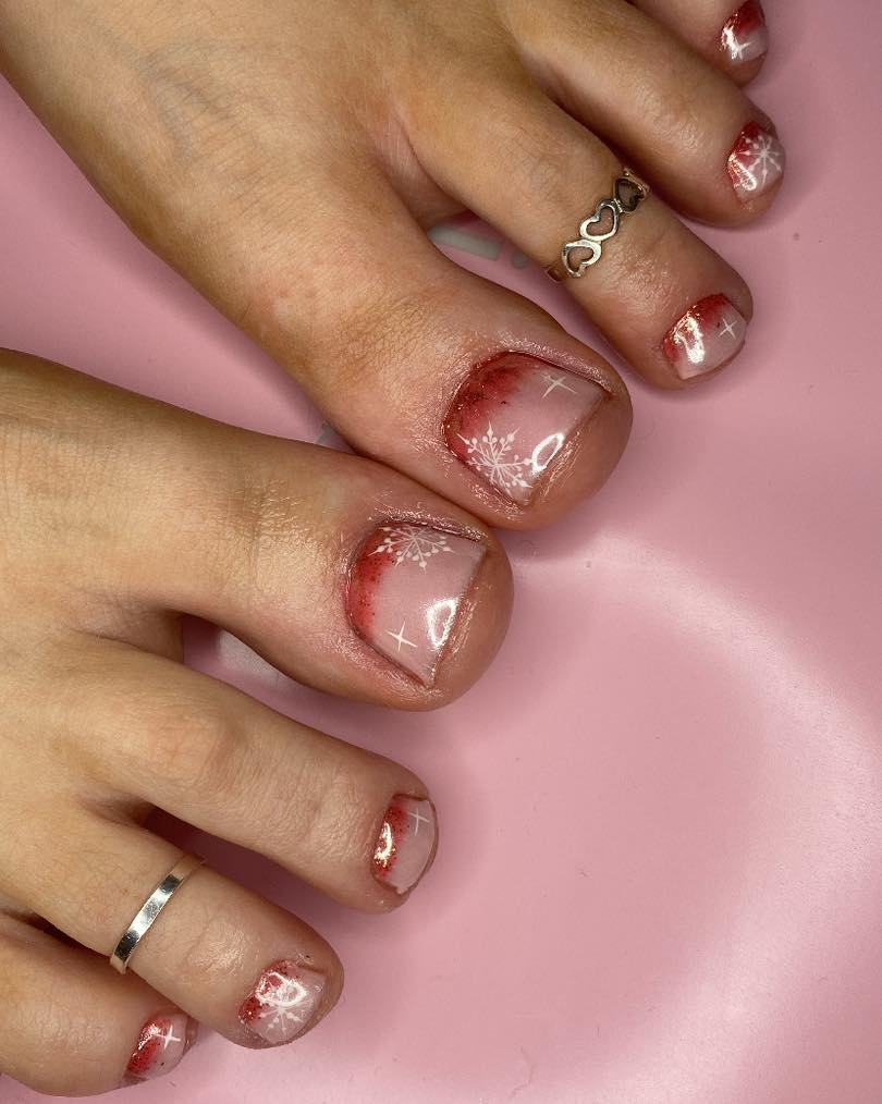 3. Glitter Fade with Snowflakes Christmas Toenails 2025