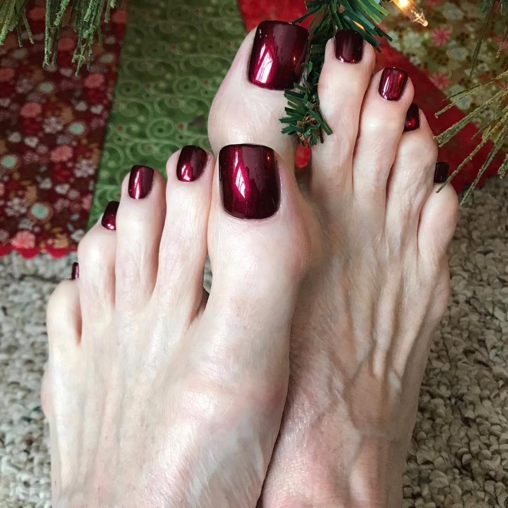 5. Deep Burgundy Shine Christmas Toenails 2025