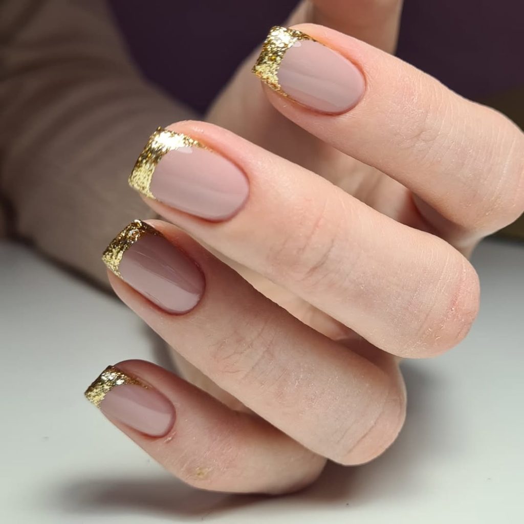 11. Soft Nude With Chunky Gold French Tips