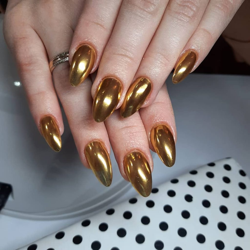 22. High-Shine Gold Chrome Statement Nails