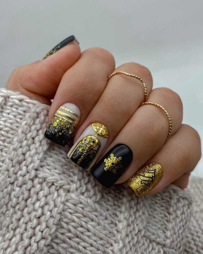 3. Black And Gold Winter-Inspired Nails