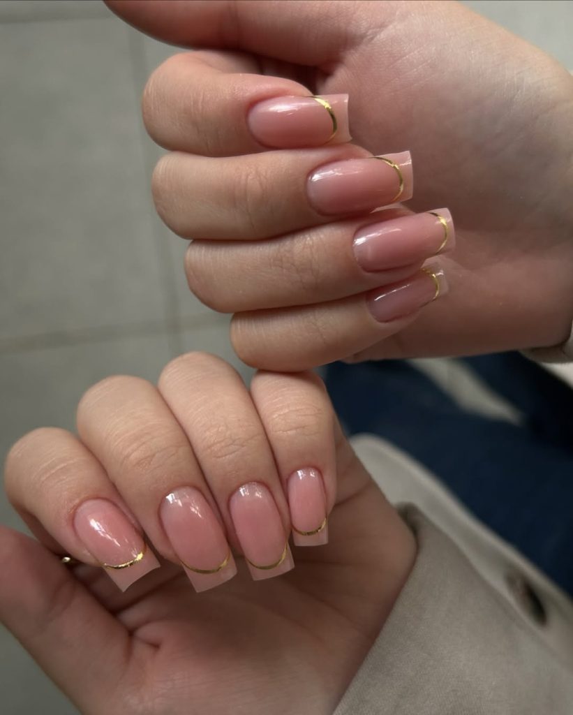 6. Nude Pink With Micro Gold French Lines