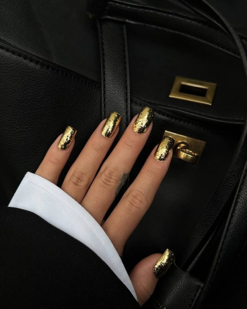 This is gold in its most confident form. The rich, textured foil effect feels bold, luxurious, and unapologetic. It’s the kind of manicure that instantly changes how you carry yourself—hands feel powerful, expressive, and stylish. There’s a raw elegance here that feels fashion-forward and fearless.
