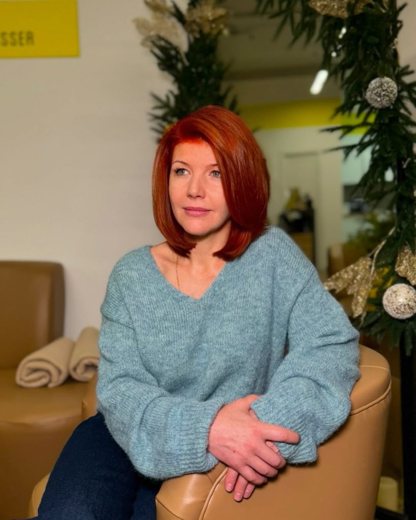 If you have thin fine hair, this layered style is especially flattering — it builds volume without looking bulky. Styling is simple: a quick blow-dry with a round brush will keep it sleek, while a touch of serum adds shine. It’s versatile, elegant, and works beautifully for women who prefer refined cuts over dramatic trends.