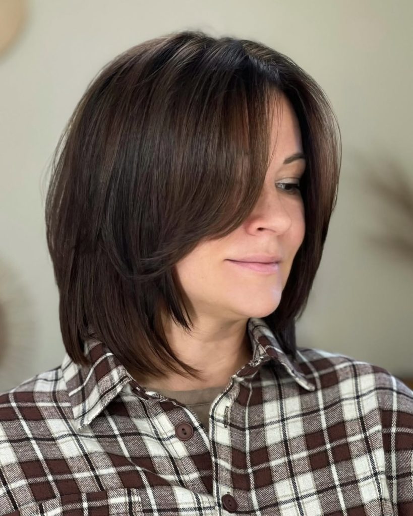 Ideal for medium to thick hair, this cut works well with a simple round-brush blowout. It offers volume without overwhelming the face. Compared to a blunt bob, this layered look has more flow and flexibility, making it perfect for styling in different ways throughout the week.