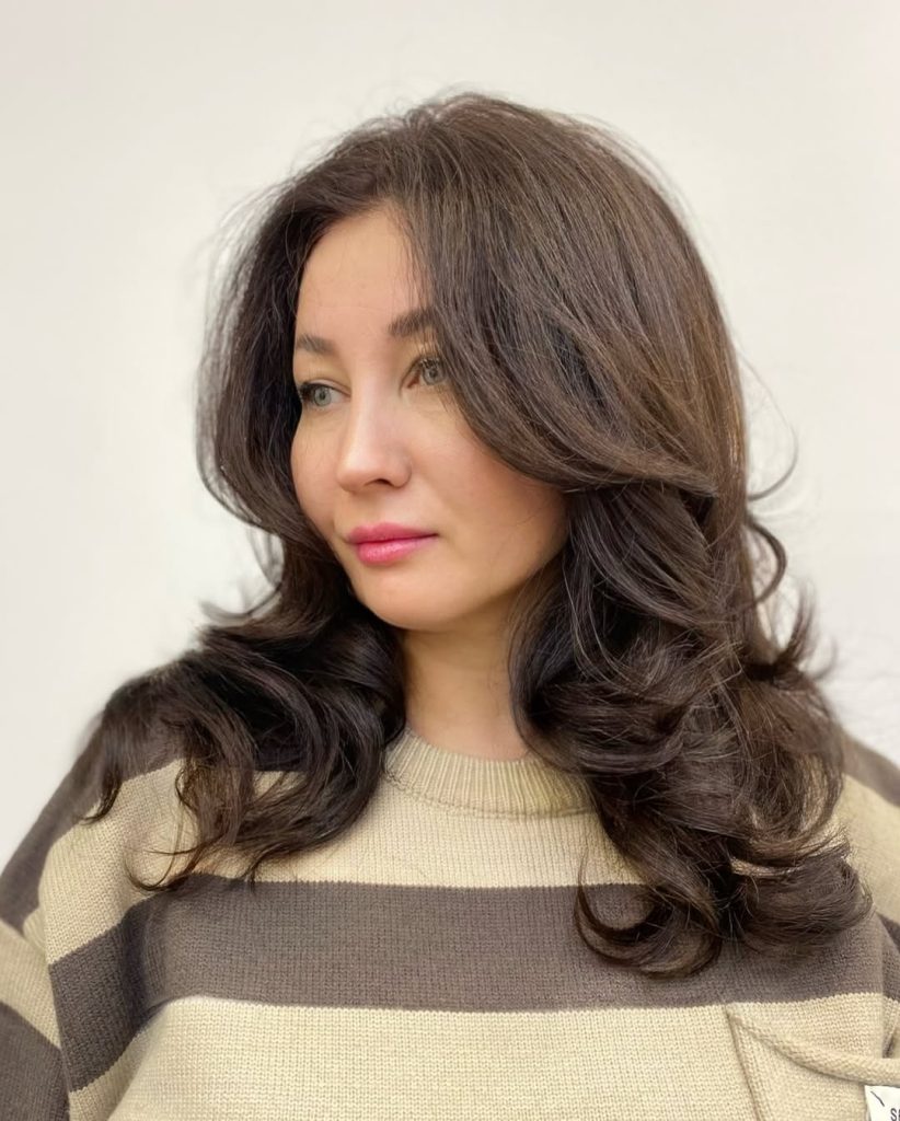 This hairstyle is perfect for thick or wavy hair that needs shaping. A blow-dryer and round brush can emphasize the lift, or you can let it air-dry for a more natural finish. It’s a beautiful option for those who want a long style with personality, rather than a simple straight cut.