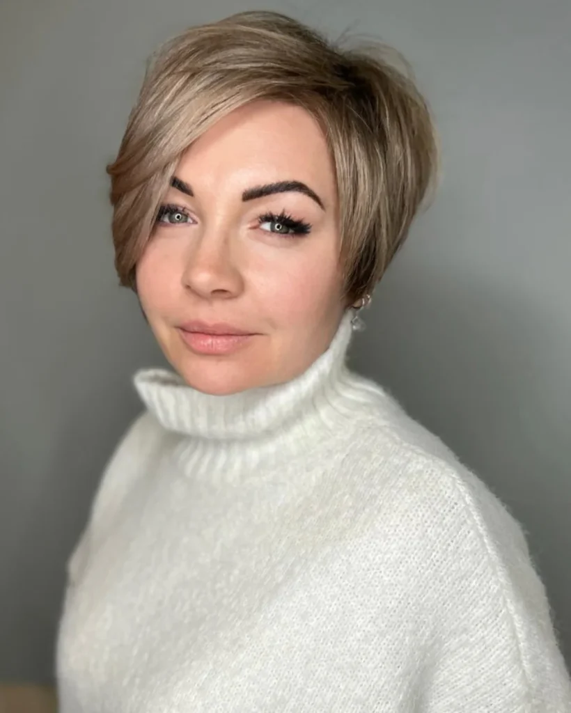 This elegant short pixie with side volume is effortlessly sophisticated. The softly swept front adds a gentle lift that brightens the face, while the neatly tapered sides keep the look clean. It’s chic, timeless, and perfect for a confident, modern woman in 2026.