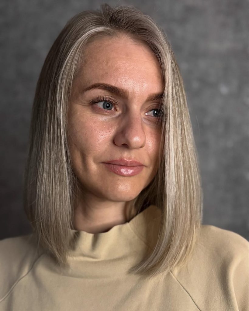 The sleek grey long bob is the epitome of understated elegance. The clean, straight lines create a sharp yet graceful silhouette, while the natural grey color adds confidence and sophistication. It’s modern, minimalist, and full of quiet power — a stunning 2026 look for women embracing their natural beauty.