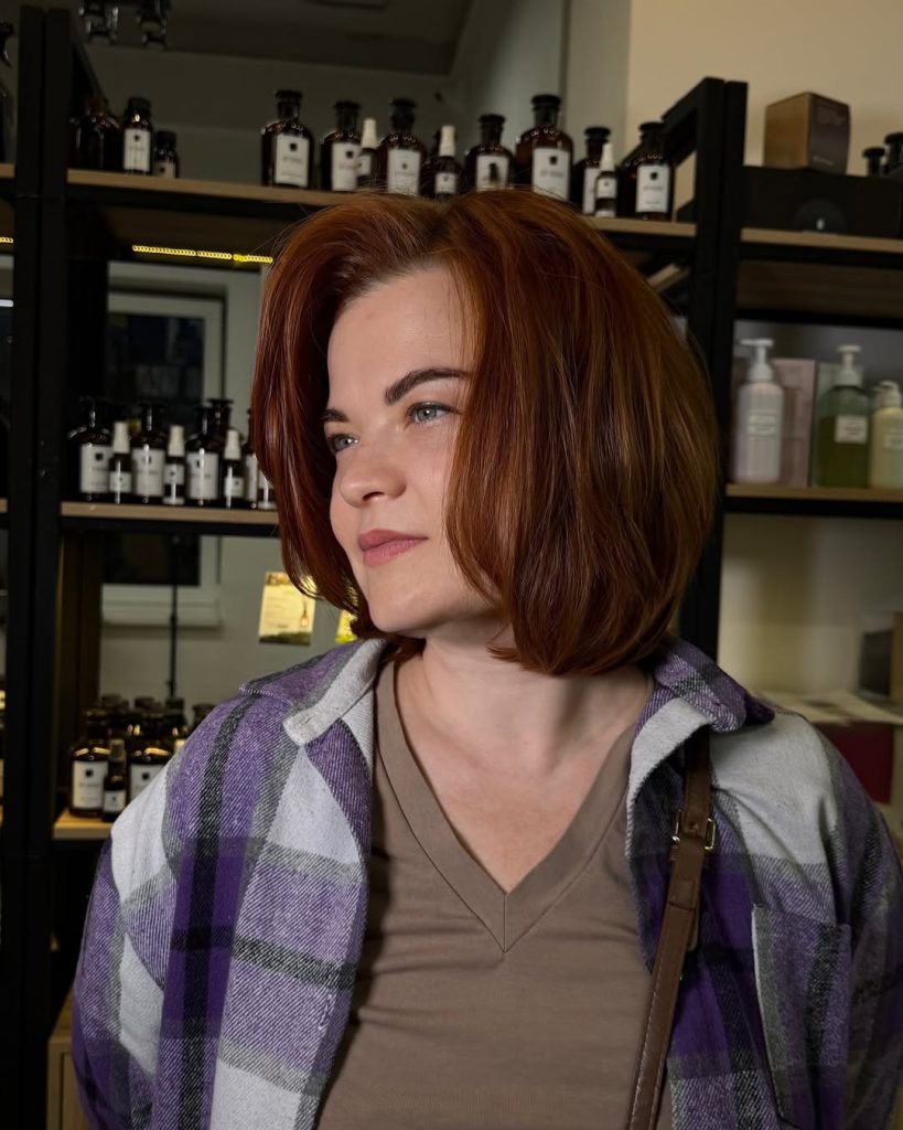 There’s something effortlessly modern about a sleek rounded bob. This short cut with its even edges and tucked-in volume creates a graceful silhouette that feels elegant yet practical. It’s minimalistic but still carries a strong sense of style.