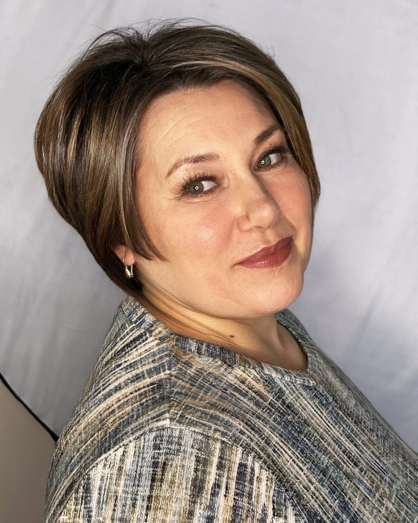 This style is ideal for women with thick or medium-textured hair who want a bit of natural volume without teasing. A quick blow-dry with a round brush is enough to bring out the shape. Compared to a bob, the wedge has more built-in lift at the crown, making it perfect for anyone who wants a chic short haircut with extra body.