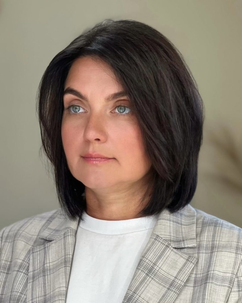 This haircut is ideal for fine or straight hair types. A quick blow-dry with a round brush can easily shape the front, and a dab of smoothing cream keeps it polished. It’s the perfect balance between structured and feminine, great for both professional and casual settings.