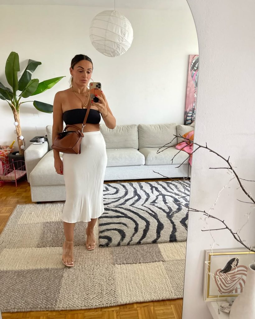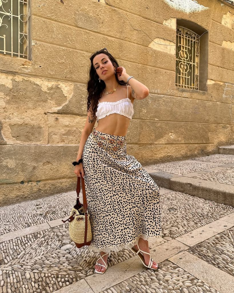 There’s a certain Chill confidence here that reminds me of summer travel days—those long walks through old towns where style meets comfort. This is a wonderful example of an Aesthetic skirt moment that works for both vacation and everyday wear. Add oversized sunglasses for a more baddie edge, but avoid heavy sneakers—they’d disrupt the airy balance.
