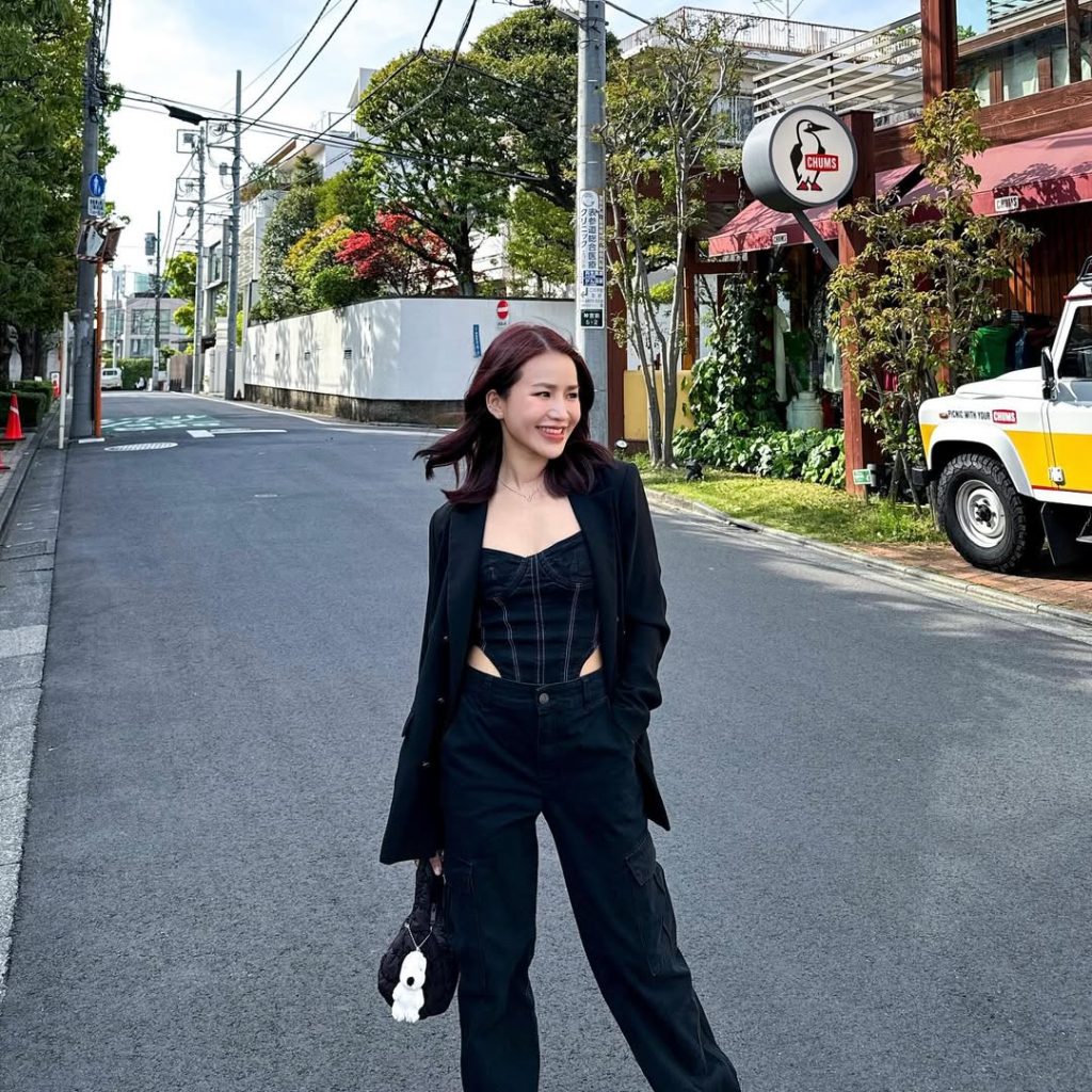 A sharp, monochrome outfit captures the confident edge of contemporary street style in Tokyo’s quieter neighborhoods. Clean lines and fitted pieces keep it modern without feeling formal.