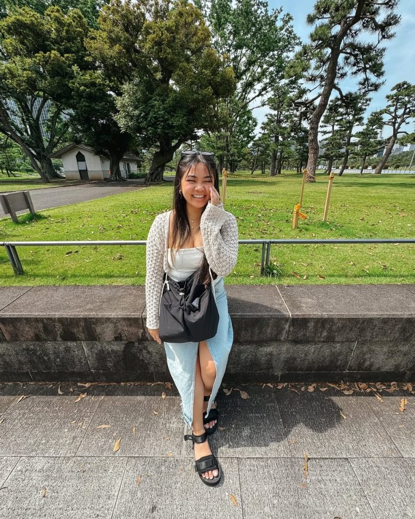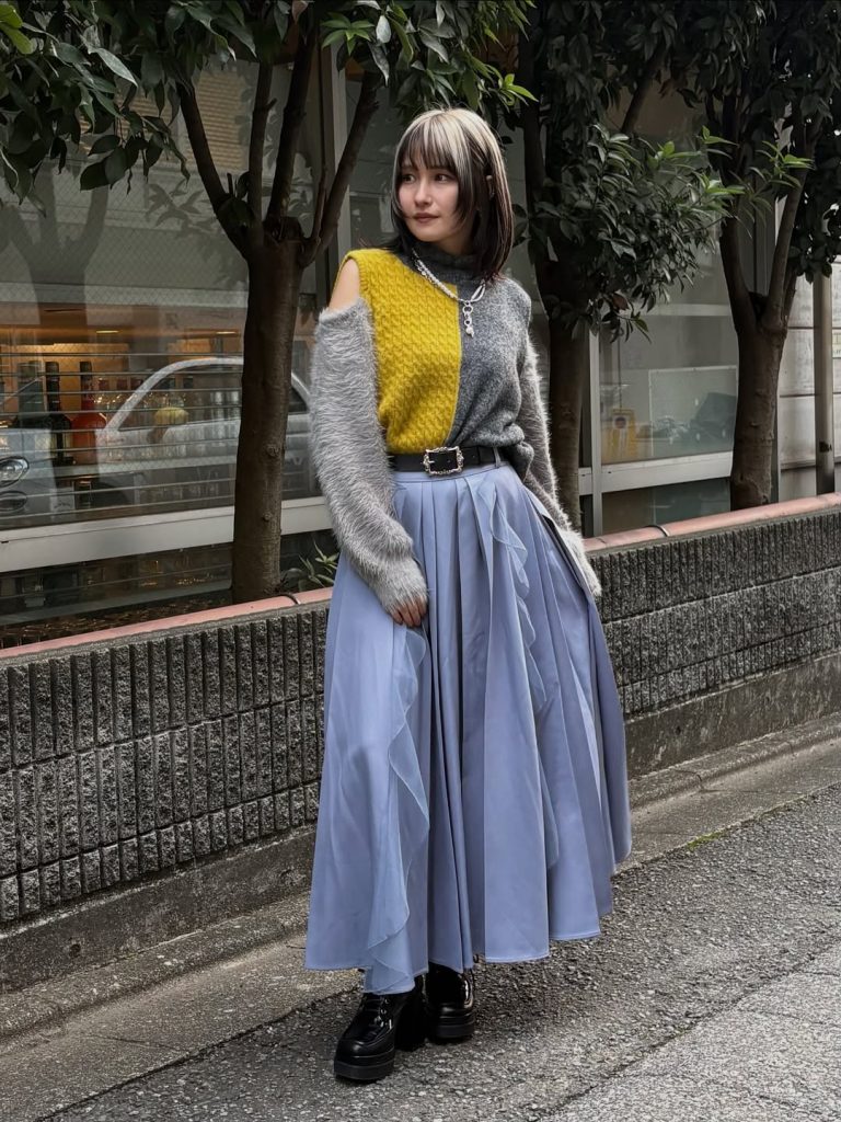 This outfit reflects Japan’s love for relaxed femininity—comfortable, modest, and quietly charming. This outfit is ideal for leisurely strolls through lush green spaces in the springtime.