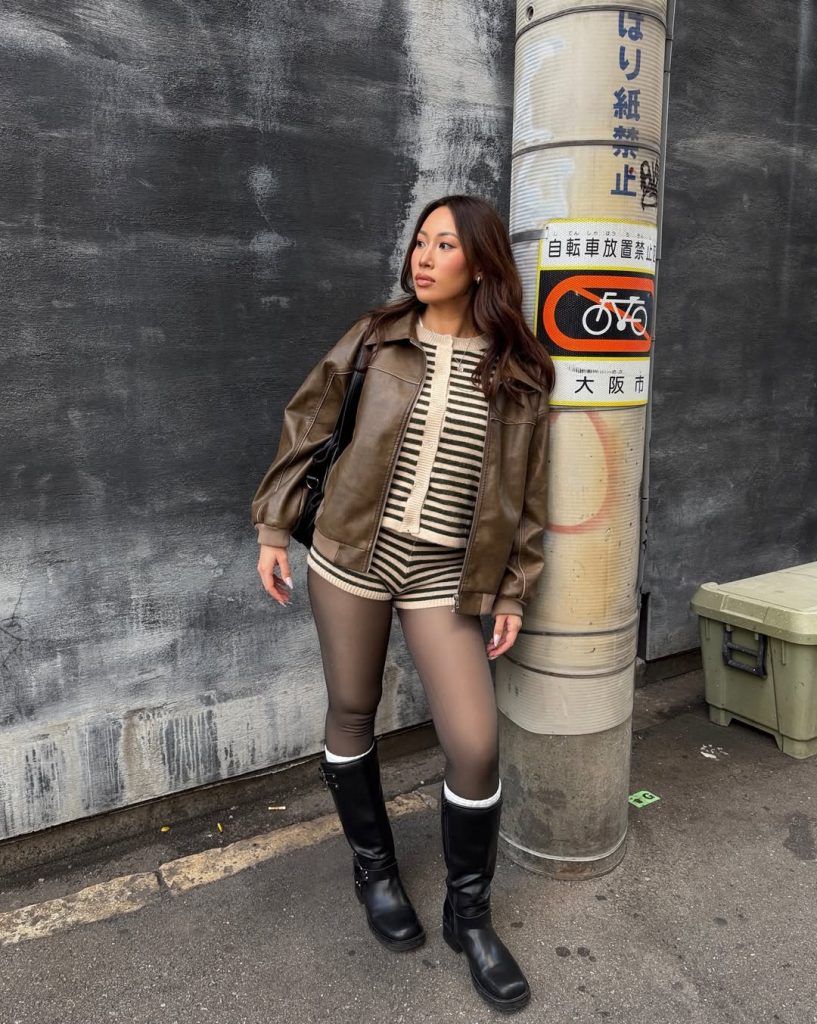 A layered outfit blends classic and playful elements, reflecting Japan’s talent for mixing eras and moods within one look.