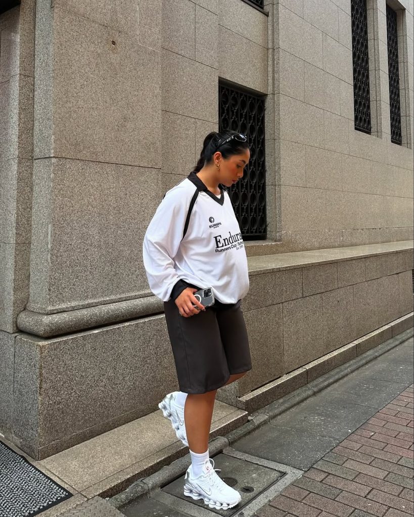 A sporty silhouette meets Japanese minimalism, ideal for active days and lots of walking. The outfit feels practical yet polished—perfect for city adventures.