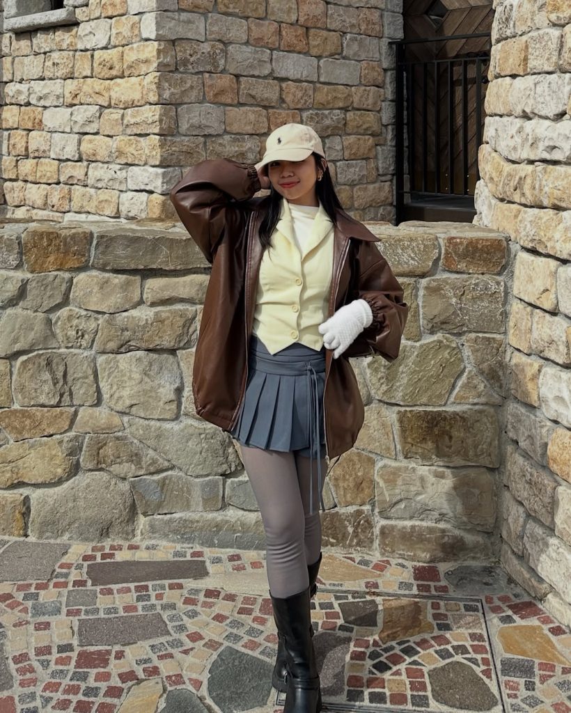 Great for cooler spring days or transitional weather, this look plays with contrast without feeling heavy. Keep makeup natural and accessories intentional. Avoid adding more colors—the balance here is already complete.