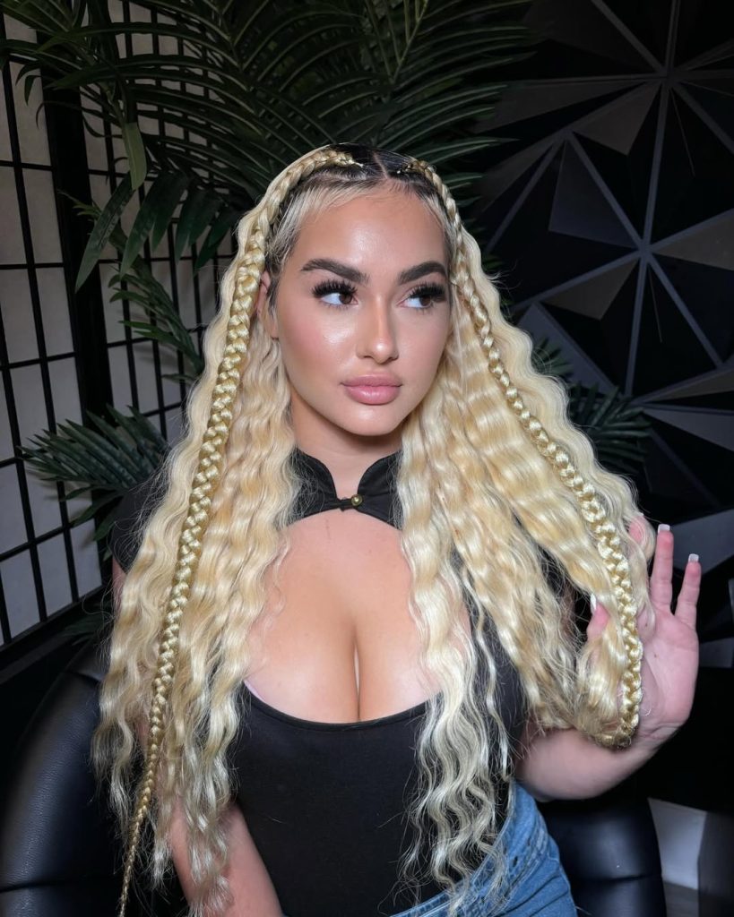 There is something fun yet unmistakably fierce when you combine tight braids with flowing body wave lengths that cascade down your back. The mix of structured plaits with wavy loose blonde weave creates a hairstyle that feels dramatic, new, and a little bit adventurous. It is that kind of hairstyle that turns heads without trying and comes with a summer vibe that is confident and charming.