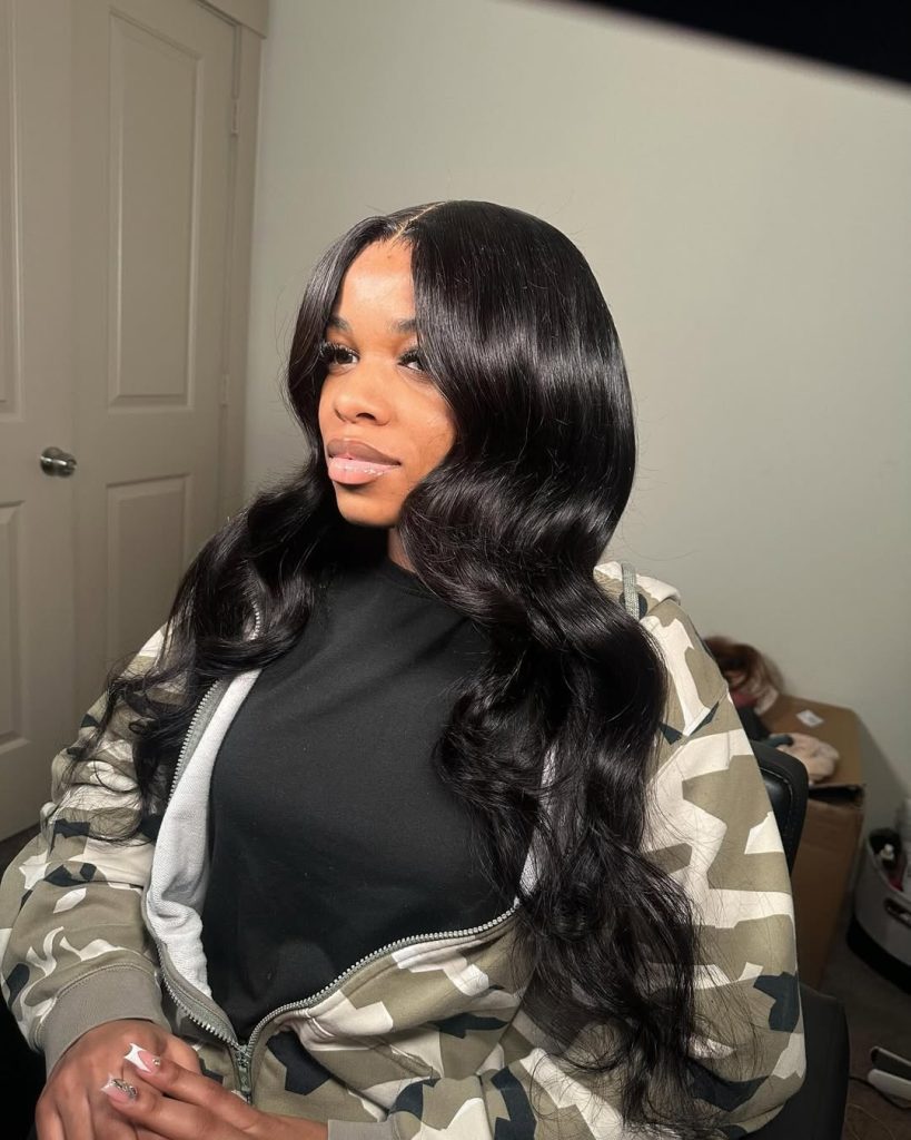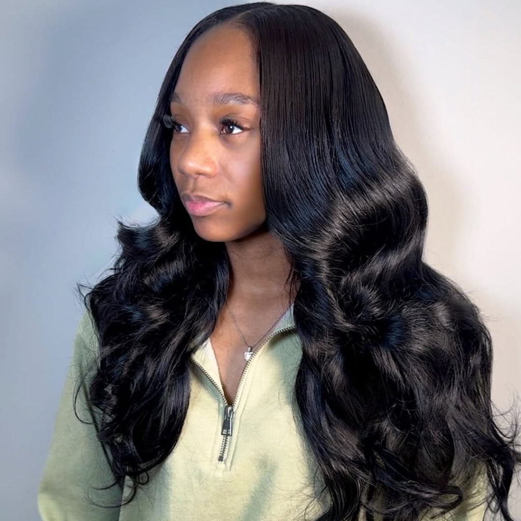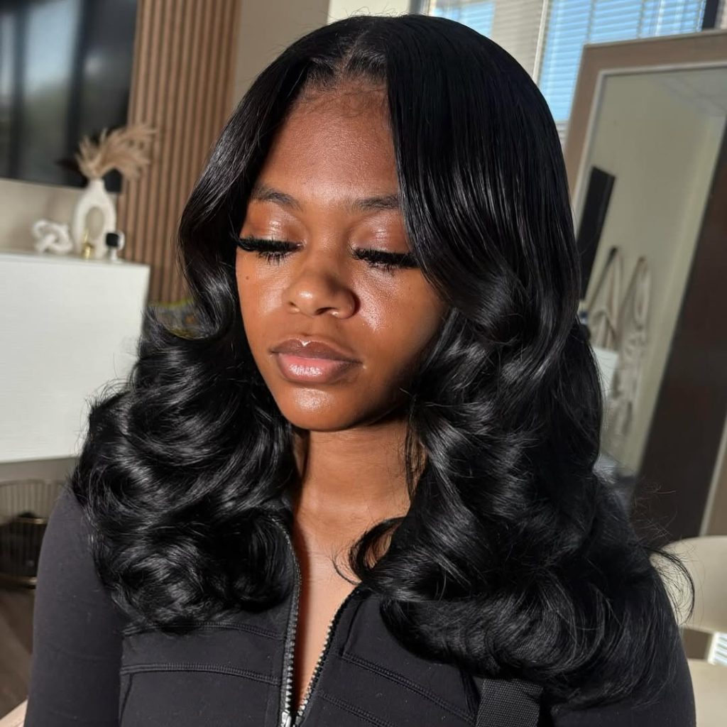 It’s best suited for those with straight hair or fine to medium textures who want a natural blend. A middle part balances most face shapes, and light body wave bundles help achieve the bounce. With minimal styling, it stays picture-perfect from morning meetings to evening plans.